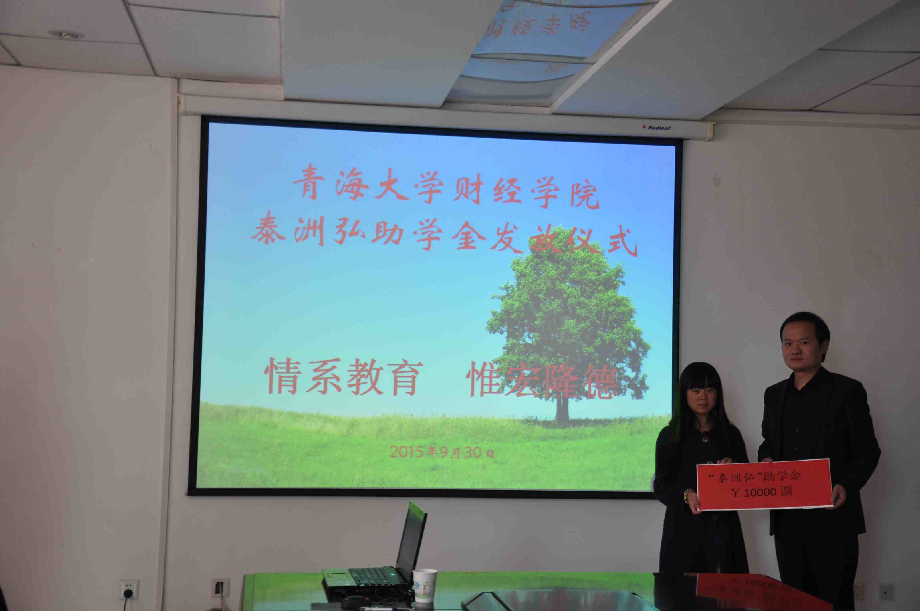 9月30日下午,17live 隆重举行“泰洲弘助学金发放仪式”。泰洲弘车辆销售有限公司董事长王于康、总经理瞿涛,院党委副书记邢建民,学生管理部副主任安守森,就业指导中心主任王黎明以及接受捐助的8名大一新生参加了活动。